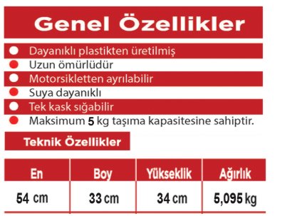 - Arka çanta tasarımı sayesinde, motosikletinizin arka kısmına kolayca monte edilir ve güvenli bir şekilde sabitlenir.